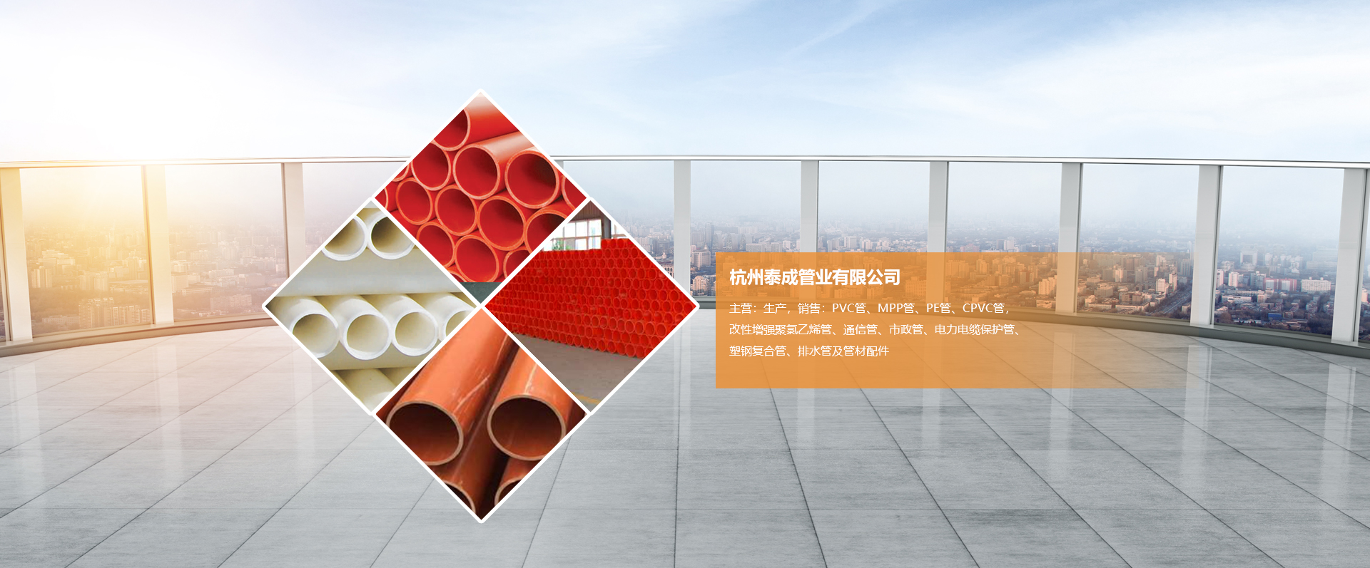 杭州泰成管業有限公司創辦于2014年。主營:生產,銷售:PVC管、MPP管、PE管、CPVC管,改性增強聚氯乙烯管、通信管、市政管、電力電纜保護管、塑鋼復合管、排水管及管材配件。